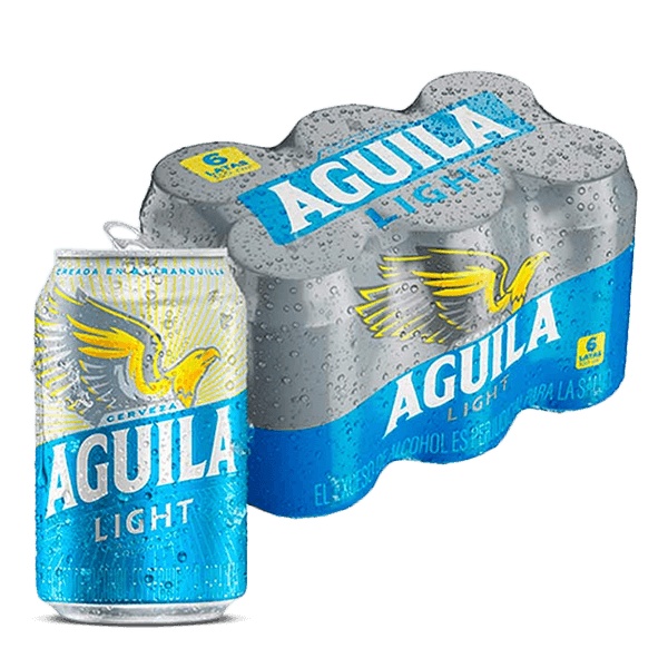 La cerveza Aguila Light viene en lata. Es una Lager de color dorado, elaborada con malta, jarabe de maíz y lúpulo. Es una cerveza juvenil con un sabor poco amargo. País: Colombia.