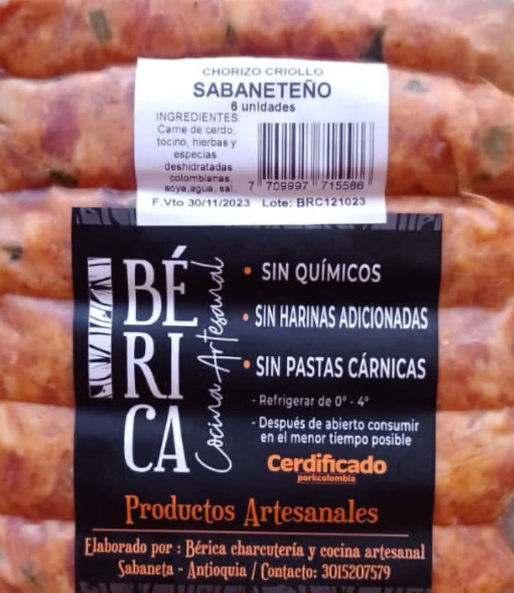 Chorizo criollo sabaneteño BÉRICA - 6 unds.