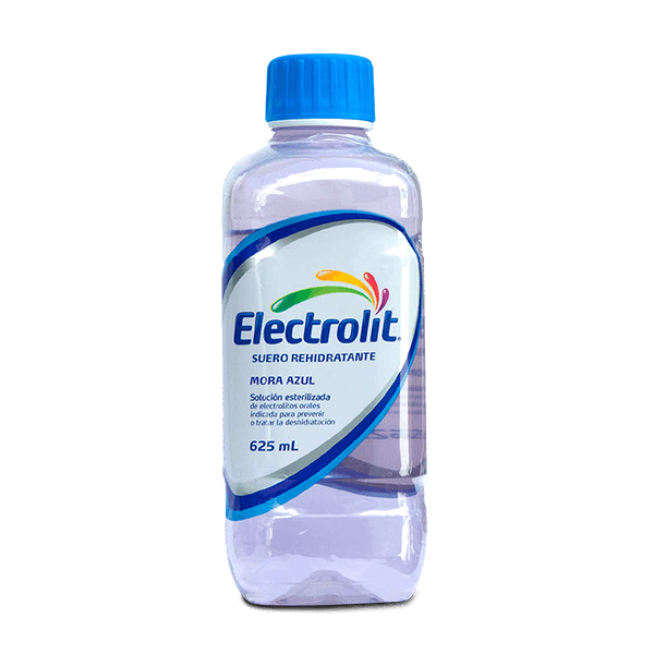 El suero Electrolit es una solución rehidratante esterilizada de electrolitos orales indicada para prevenir o tratar la deshidratación. Tiene sabor a mora azul y su presentación es de 625 ml.