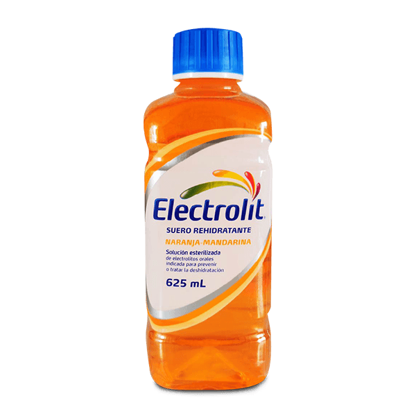 El suero Electrolit de naranja mandarina tiene una presentación de 625 ml. Es una solución rehidratante esterilizada de electrolitos orales indicada para prevenir la deshidratación. leve o moderada.